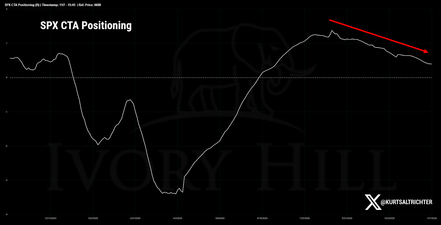 CTA positioning stepped down again because trend momentum weakened. CTAs follow the trend. VolControl follows realized volatility.