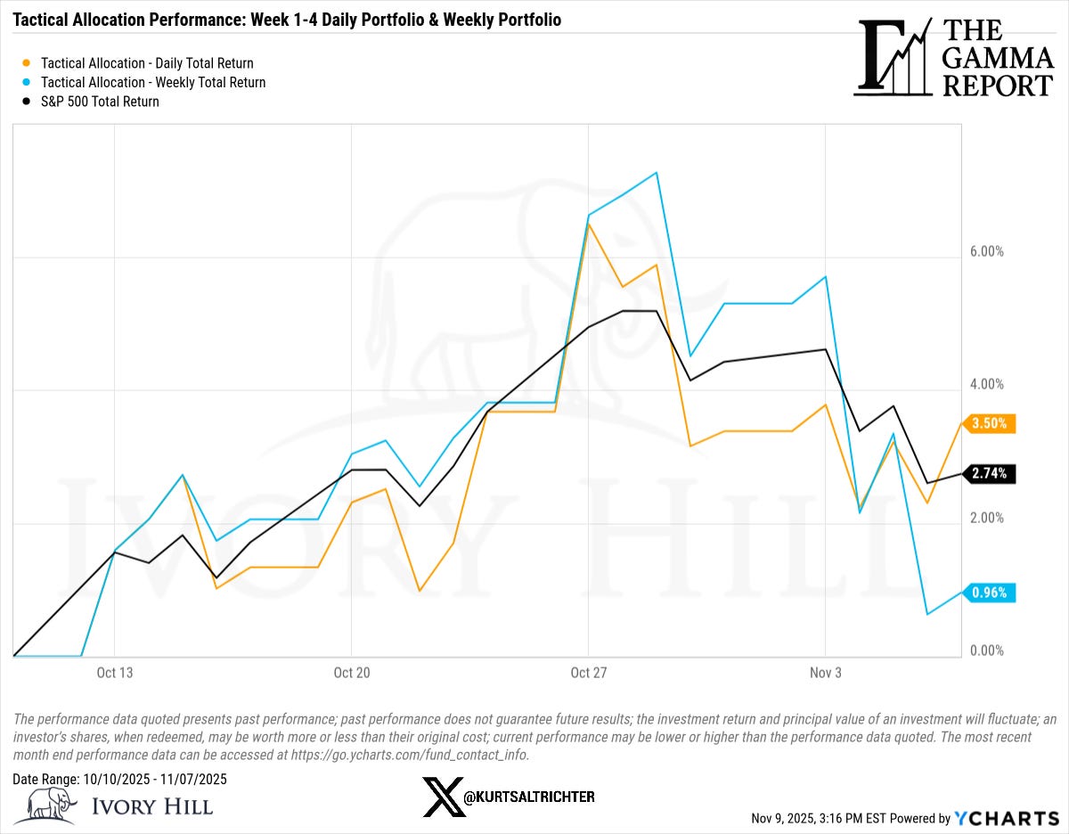 The weekly model still has the benefit of suppressing noise, but this week, the price of that slower reaction speed was underperformance relative to the daily sleeve.