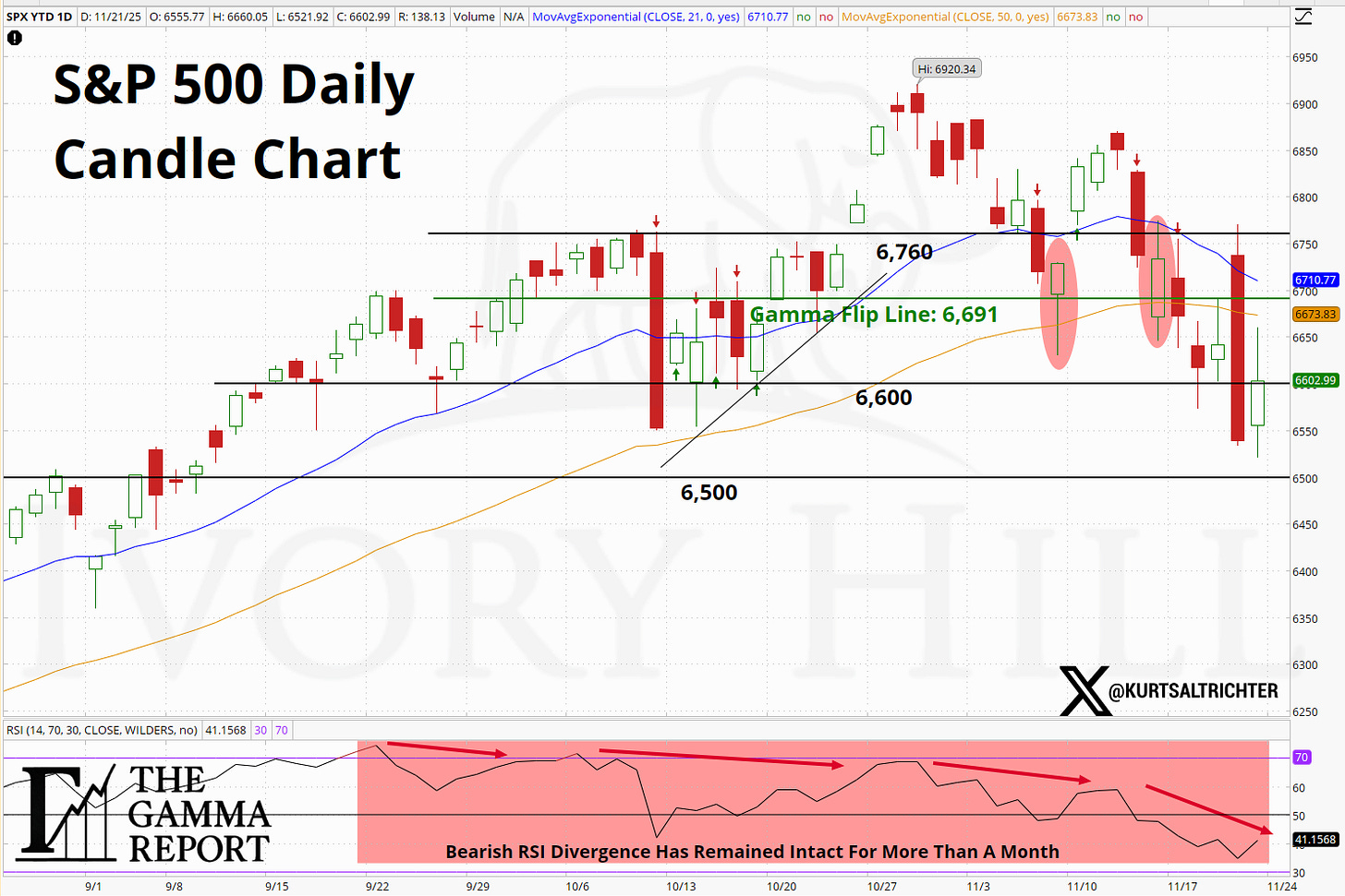 With SPX stuck below the flip line, the tape is now more sensitive to incremental volatility, headlines, and flows. Until price can reclaim the flip line and hold it, traders should expect choppy sessions where moves extend further than they “should.”