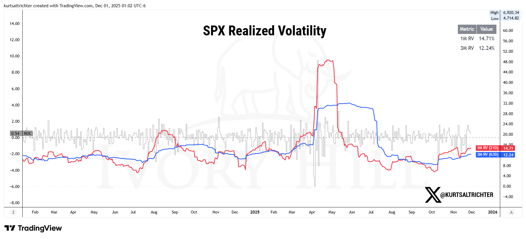 30-day realized volatility: 14.71, up from 13.89