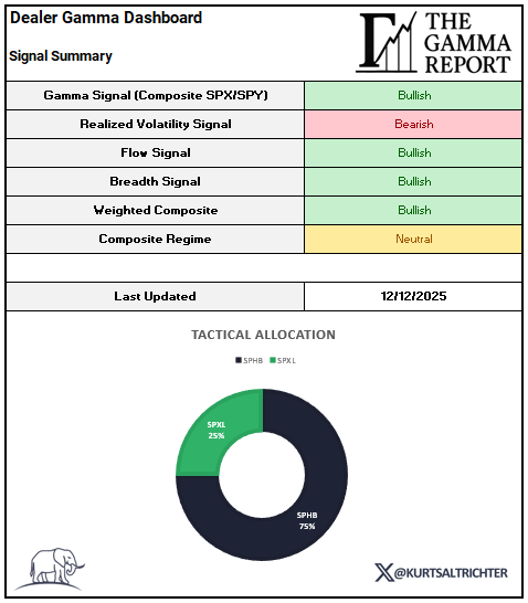 With gamma, flows, and breadth all scoring Bullish, the weighted composite finished the week Bullish again.