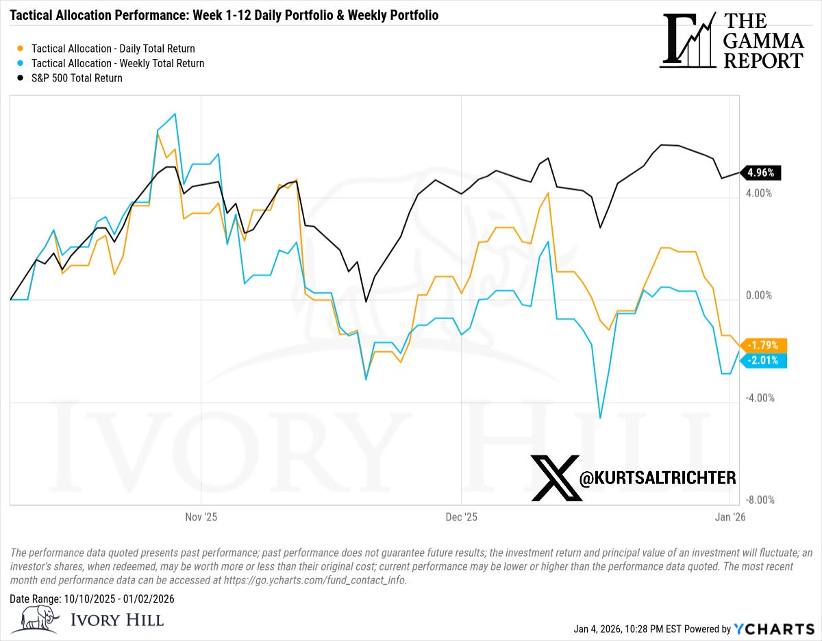 The data, models, and tactical allocations discussed in this report are designed to illustrate market structure and positioning trends and may differ from portfolio decisions made by Ivory Hill, LLC or its affiliates. Investing involves risk, including the possible loss of principal. Past performance is not indicative of future results.