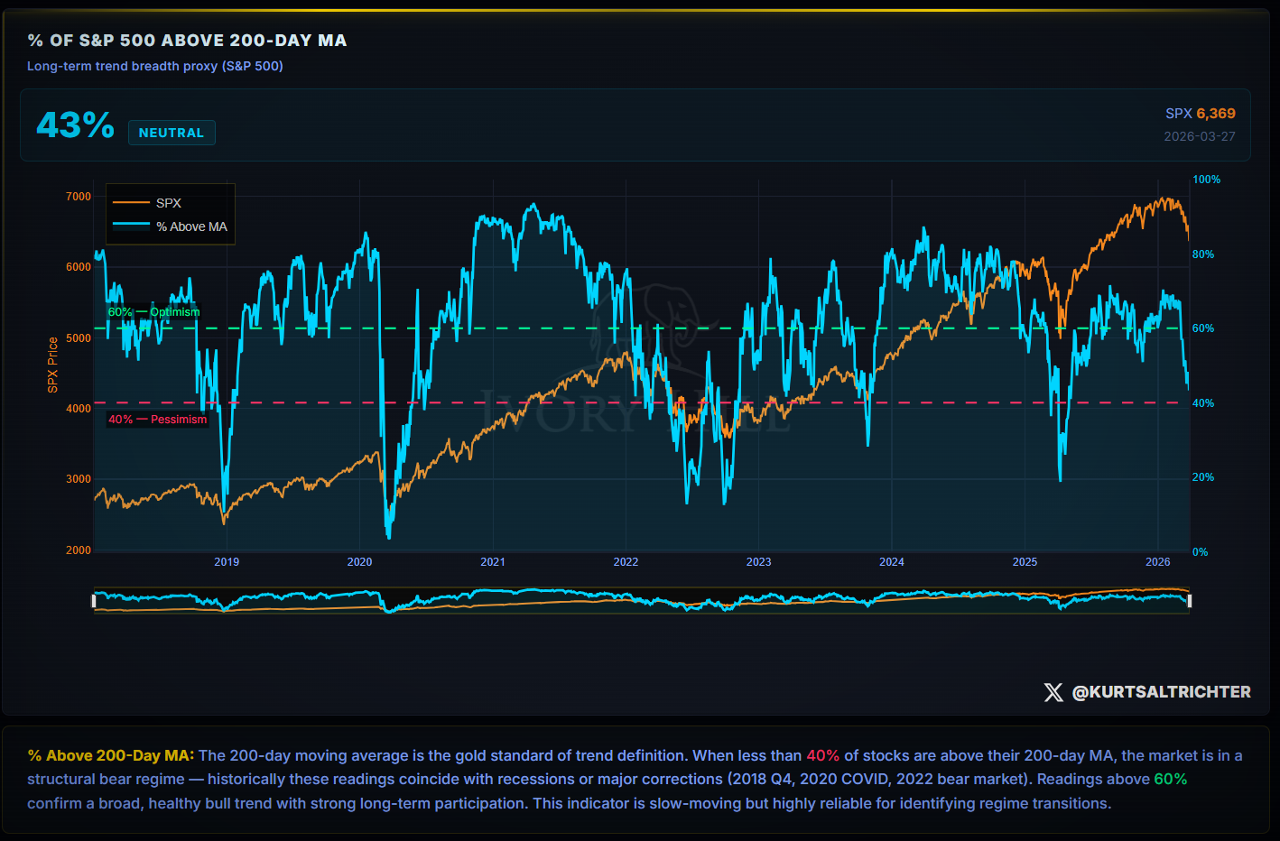 The level to watch is 40%. That is the threshold historically associated with recessions and major corrections. 2018. 2020. 2022. We are getting very close.