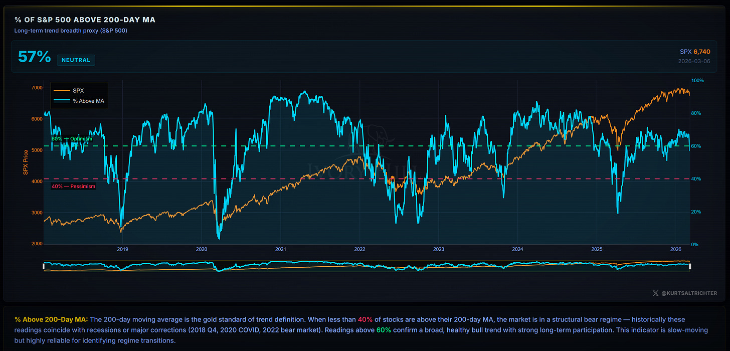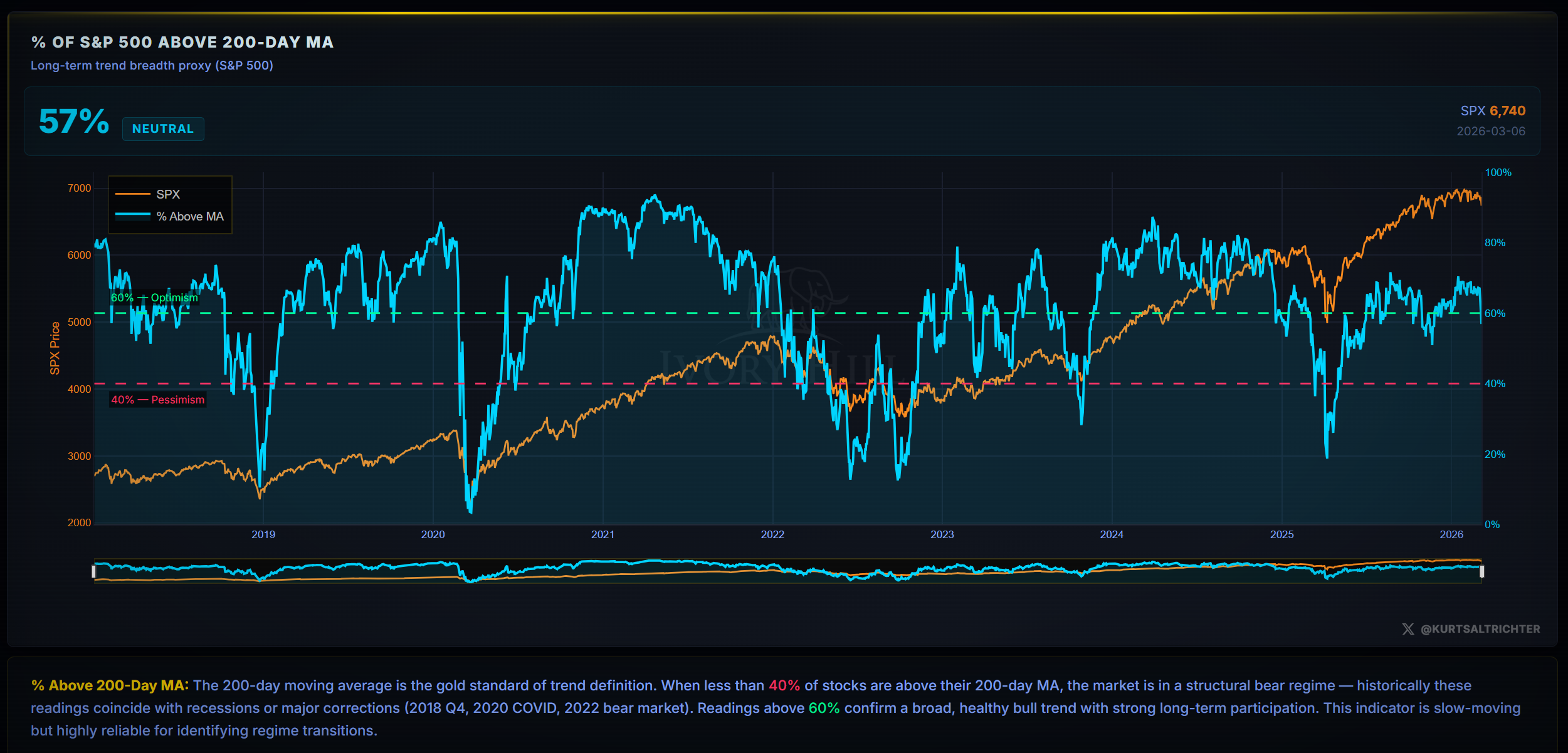 57% of S&P 500 stocks are above their 200-day MA. Breadth Signal: Neutral.