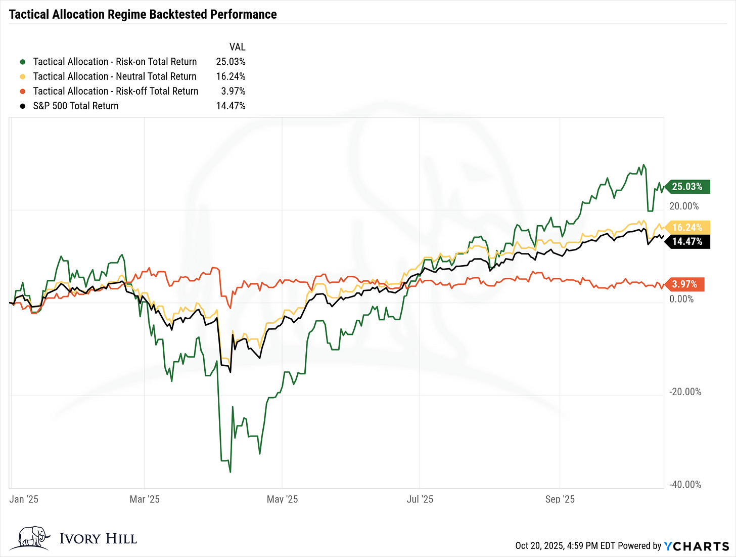 Here is the backtested performance for each tactical allocation regime.