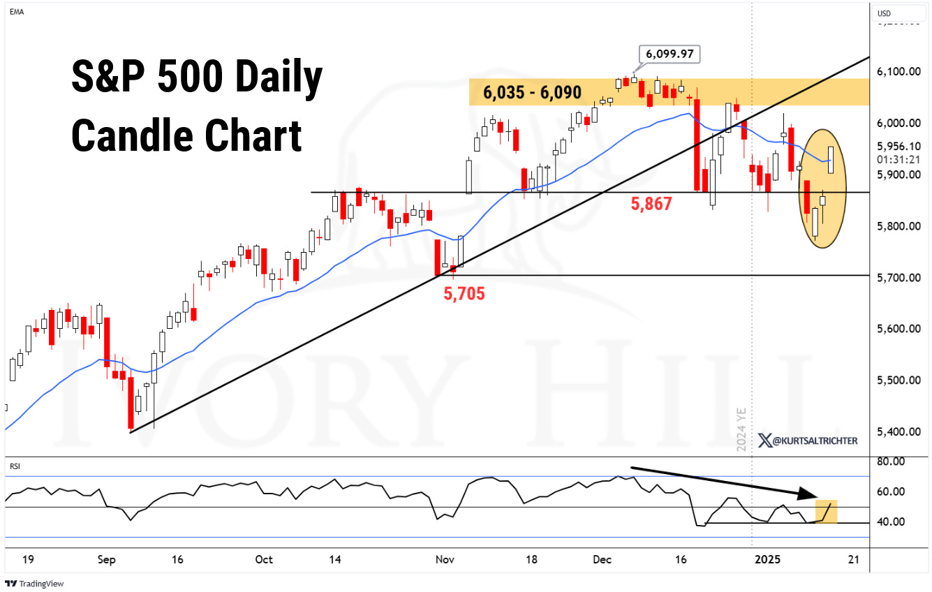 The better-if scenario target aligns with the December all-time highs of 6,090 (closing) and 6,100 (intraday). Until these highs are exceeded, they will serve as critical resistance.
