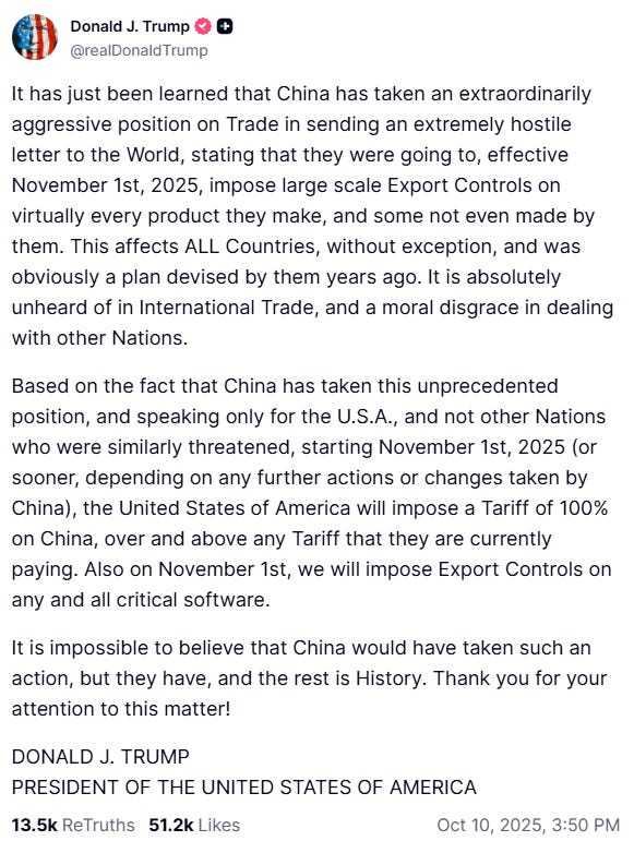 While the market thinks this was because of Trump's post on China, under the surface, it has been telling a very different story.