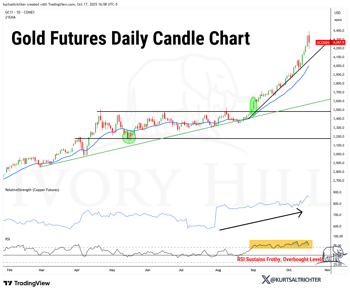 Gold is behaving like a meme stock, not a safe-haven. We have to be nearing a short-term top because I have received more than a few client calls over the last week, specifically asking me why we do not have more allocated to gold; one of those calls was from my own mother. This happens every time we enter a mania. When Bitcoin is ripping, the younger generation complains about not having enough allocated to crypto, and the older generation complains about not having enough allocated to gold.