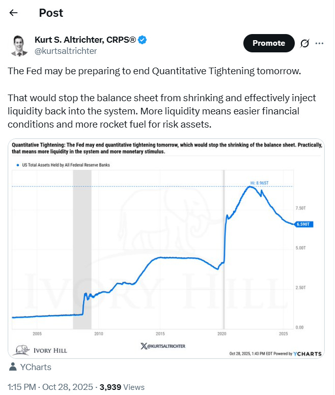 Market Psychology: Ending QT signals a shift from tightening toward accommodation, often interpreted as supportive for asset prices.
