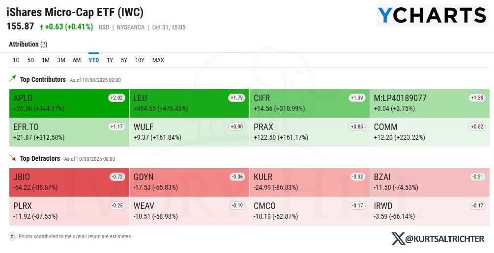 I continue to see small and mid-caps as the most attractive area heading into Q1 2026. We’ve been increasing exposure to ARKK, IWM, and TNA, and recently added micro-caps through IWC.
