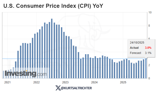 Based on the data in front of me, I completely disagree with the Fed Chair’s outlook that inflation will rise on the November 13th CPI report. My models point to a reading below 3%. The next FOMC meeting is scheduled for December 9. If CPI prints below 3% on November 13, as I expect, that would put a December rate cut back on the table just in time to fuel a year-end Santa Claus rally.