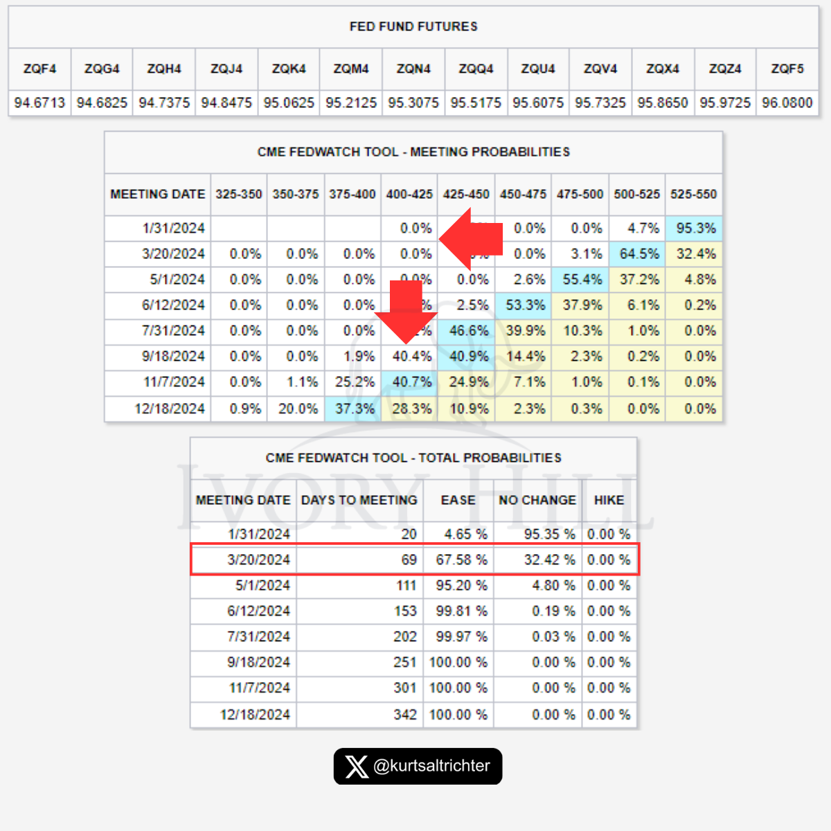 To be clear: the market's short-term issue is that it has priced in expectations of rate cuts in March (unlikely) and a scenario of Immaculate Disinflation (a situation where the Fed successfully brings down inflation without causing a recession or high levels of unemployment), characterized by falling inflation and stable growth. If the incoming data doesn't align with these expectations, as was the case last week, stock prices will fall.