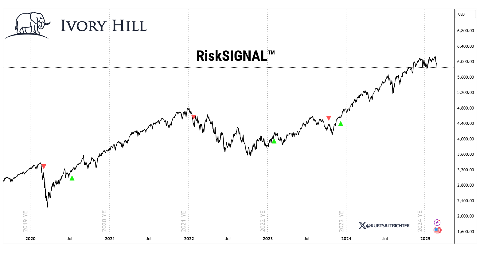 The Ivory Hill RiskSIGNAL™ remains green, confirming that pullbacks are buying opportunities. Our short-term and mid-term volatility signals are red so higher volatility over the next few weeks should be expected.