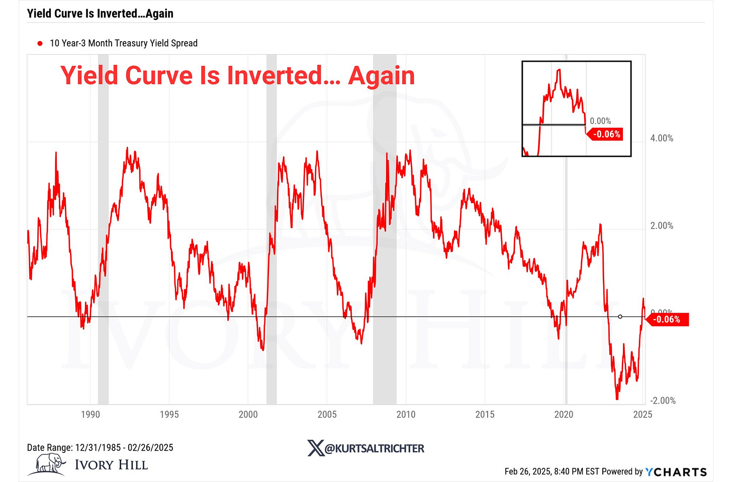 An inverted yield curve during an equity bull market should not be overlooked, but it’s also not an immediate reason to sell, as significant cyclical bull market gains often happen during these inversions. The key recession signal to focus on is rapid bull steepening in the 10Y-3M spread.