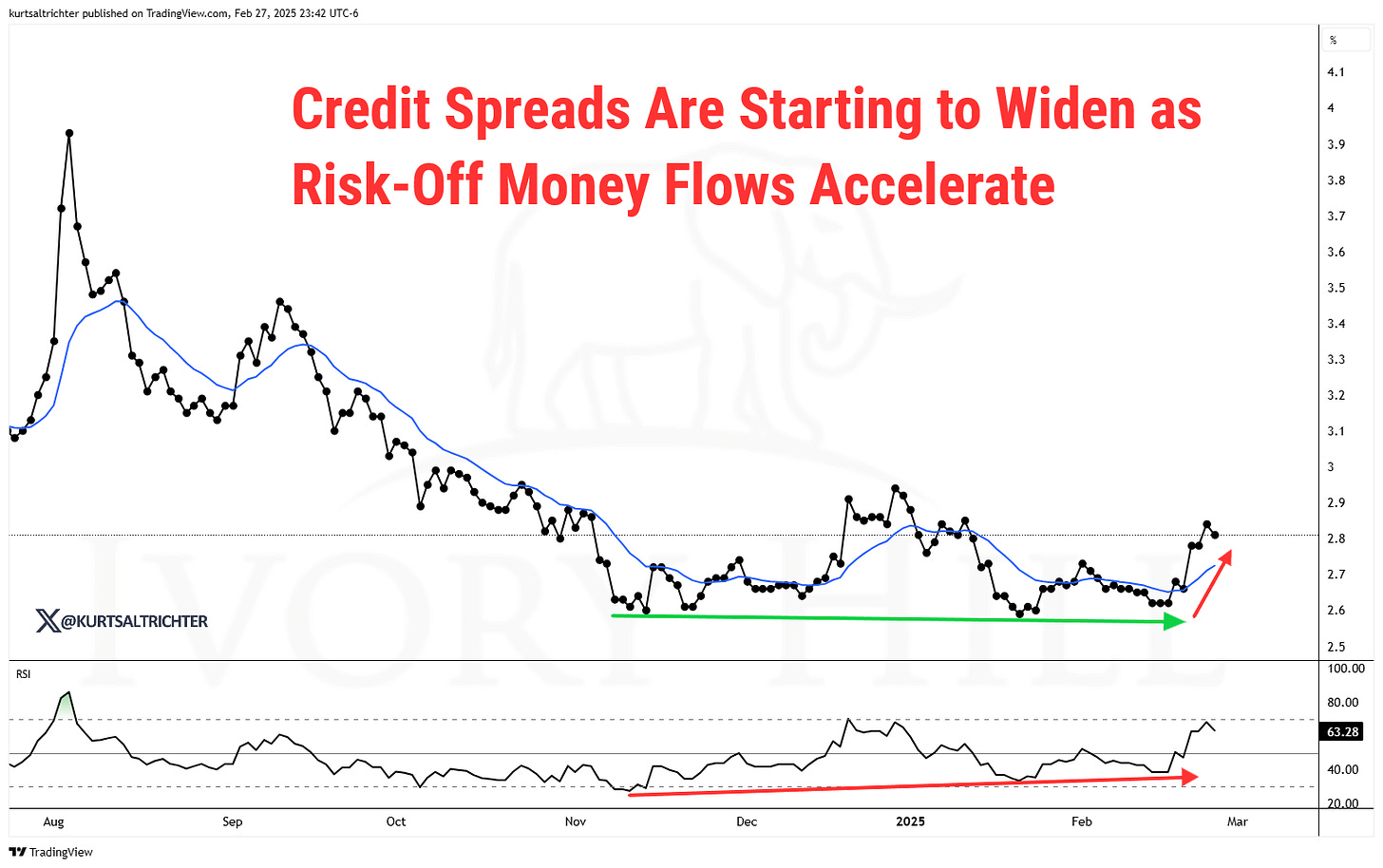 Historically, credit spreads have been a valuable indicator for equity investors, as tightening often reflects strong risk-on flows into stocks and high-yield corporate bonds. However, a sharp widening to 52-week highs in credit spreads serves as a key warning sign of a potential recession.