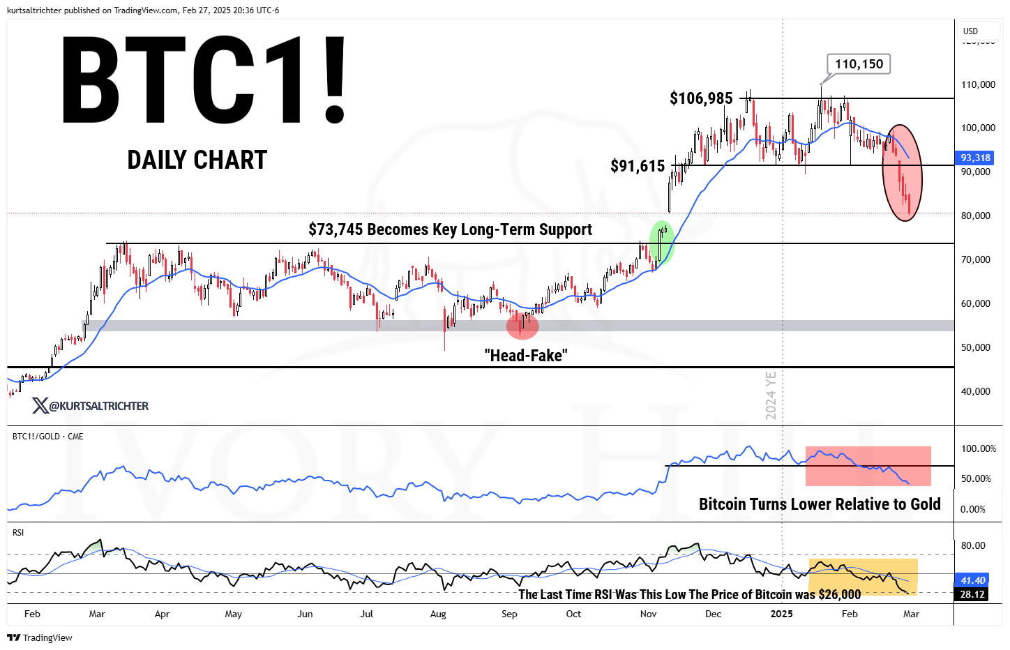 We closed our Bitcoin position after it broke below the key $91,615 support level. It's now down nearly 30% from all-time highs. That said, Bitcoin remains at the top of our watchlist—I still see strong potential for it to be a top performer, but strict risk management is essential in this asset class. Our focus is now on key support at $73,746.