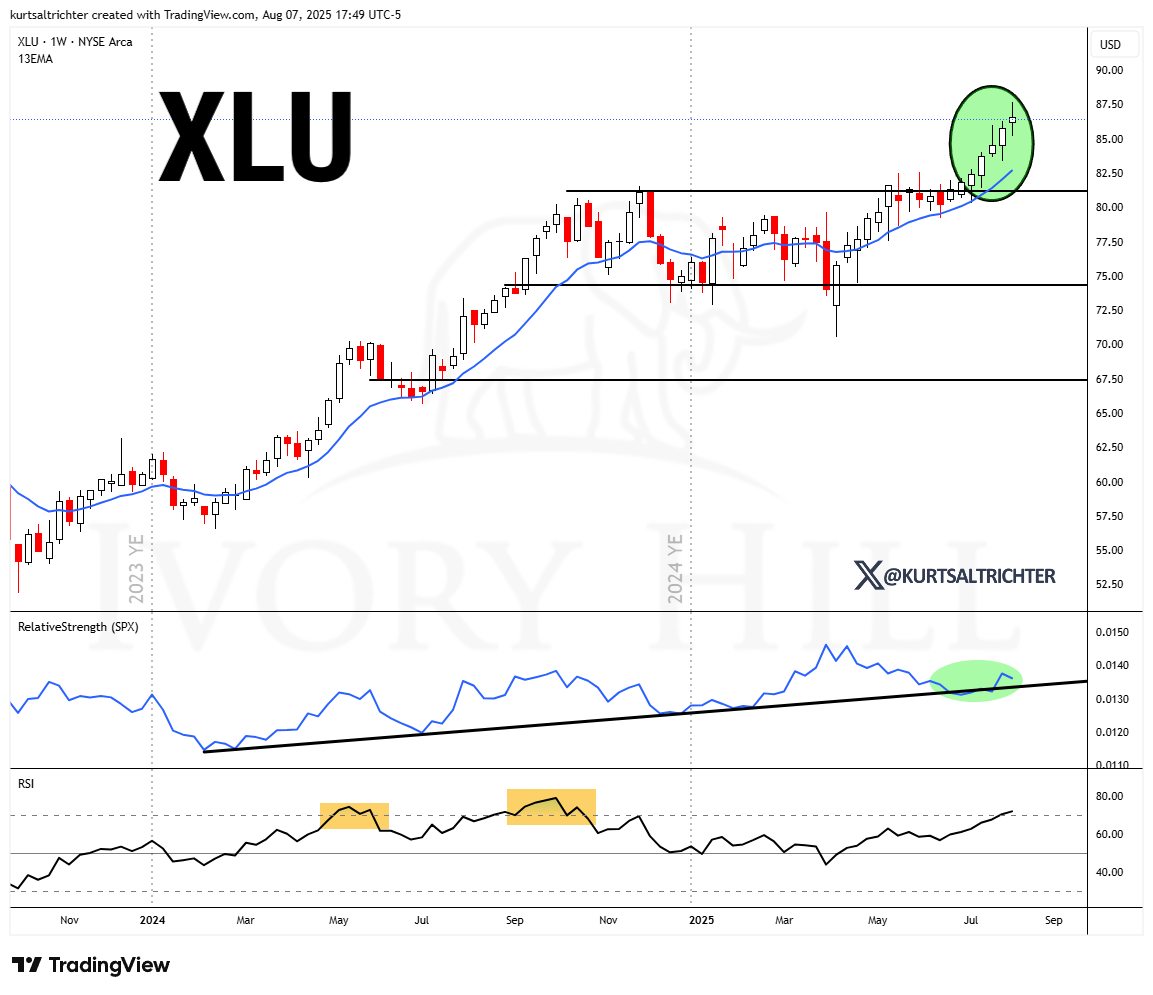 These bond proxy sectors become more attractive when short-term yields decline and the curve steepens. For utilities, that’s an added tailwind on top of booming electricity demand from AI-related infrastructure, the Utilities Select Sector SPDR Fund (XLU) recently hit all-time highs. For REITs, the easing in both long-term yields and inflation concerns removes a major headwind. If the 2-Year keeps leading rates lower, both sectors stand to benefit from improved relative yield appeal.
