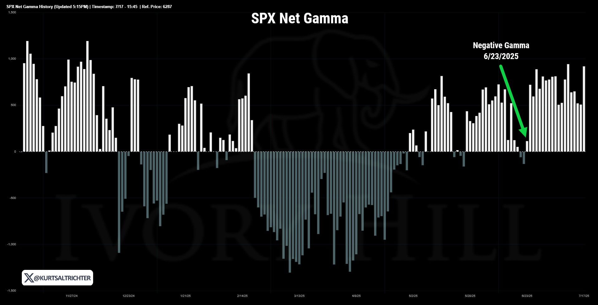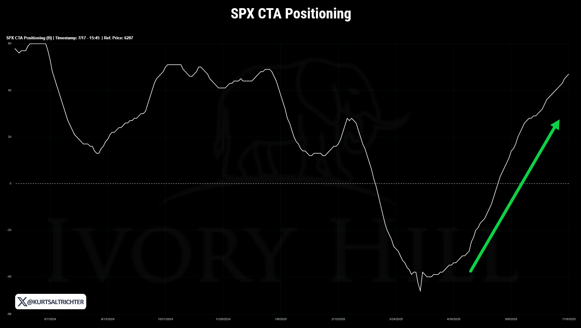But this kind of strength cuts both ways; what goes up mechanically can unwind even faster. As long as volatility stays low and the trend holds, the bid remains. But if either breaks, the same algorithms that have been forcing buyers could become forced sellers. It's bullish for now, but it's built on fragile footing.