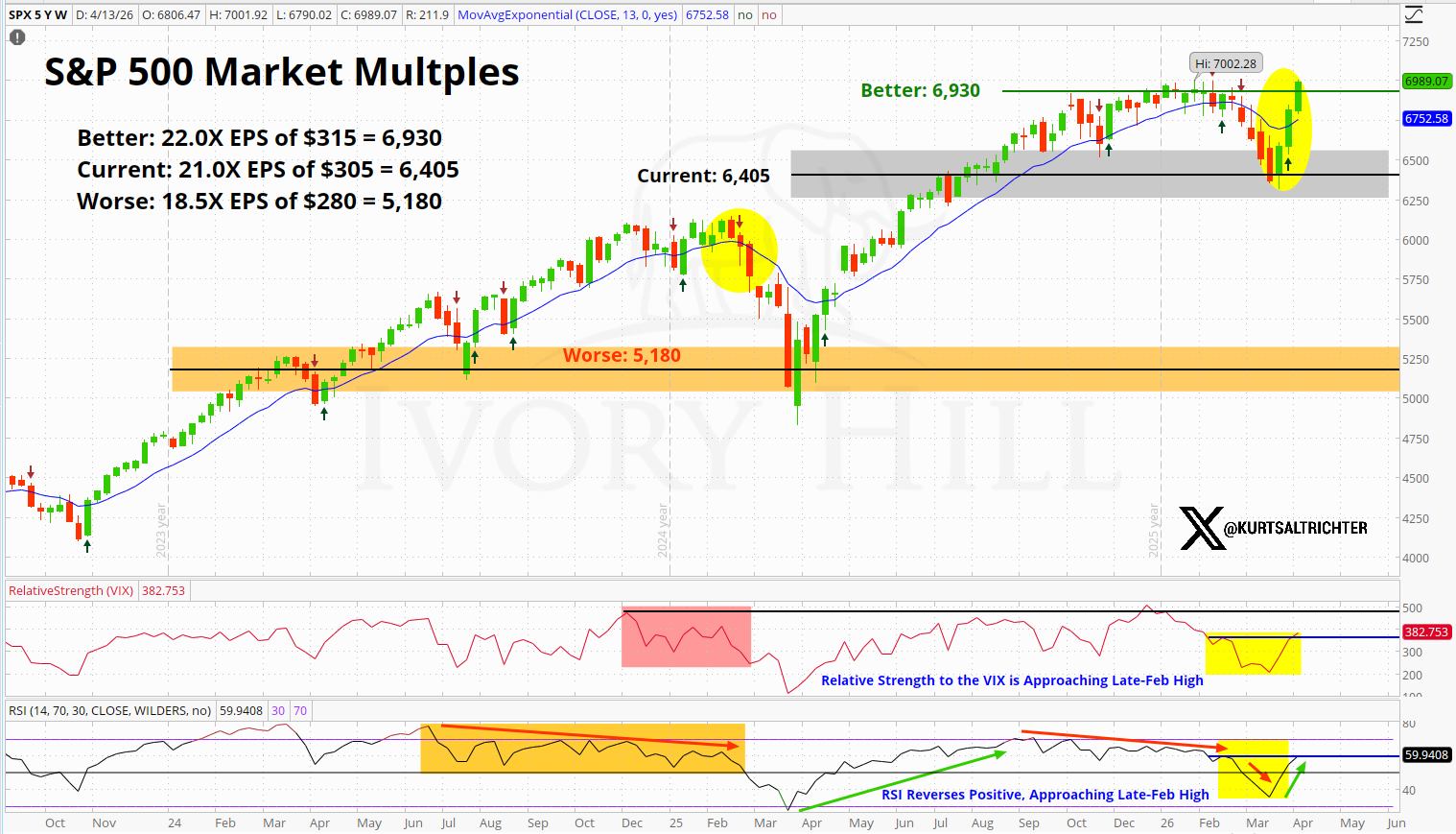 If you’re adding exposure up here, you’re making a bet that everything breaks right. The war wraps up cleanly with no Trump Tape Bombs. Inflation stays contained. The Fed cuts on schedule. Earnings hold up. That’s four things that all have to go your way at once.